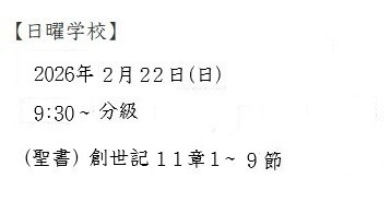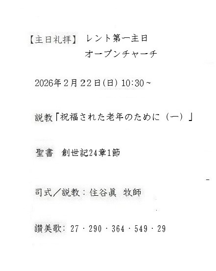 ◇教会案内のページを更新しまし、新年度の標語及び年間予定を掲載しました。(2026.1.26)