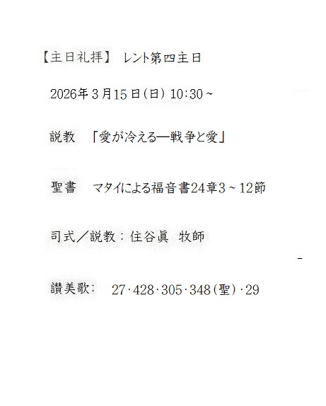 ◇「礼拝の手引き」「Q&A」のページを更新しました。(2026.3.2)